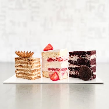 -Tortas „Čiau, braške!“ – purūs biskvitai, braškių kompote, braškinis kremas, vanilinis sūrio pyragas.